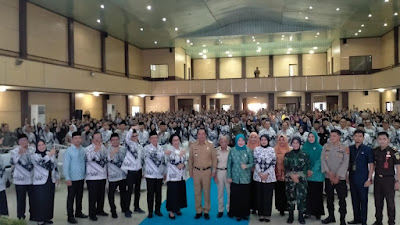 LAHAT, SS - Bupati Lahat H.Cik Ujang SH didampingi Wabup Lahat Haryanto SE MM menghadiri secara langsung perayaan Hari Ulang Tahun (HUT) Persatuan Guru Republik Indonesia (PGRI) ke-78 dan Hari Guru Nasional (HGN) kabupaten Lahat. Selasa (7/11/2023) Bertempat di gedung kesenian kabupaten Lahat provinsi Sumsel.